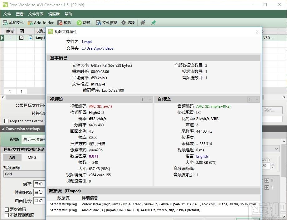 1、FreeWebMtoAVIConverter体积小巧、占用系统空间不大